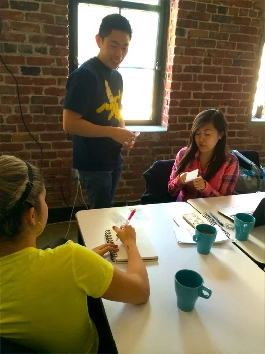 One designer would manually switch out screens as the user clicked around while another designer would take notes.